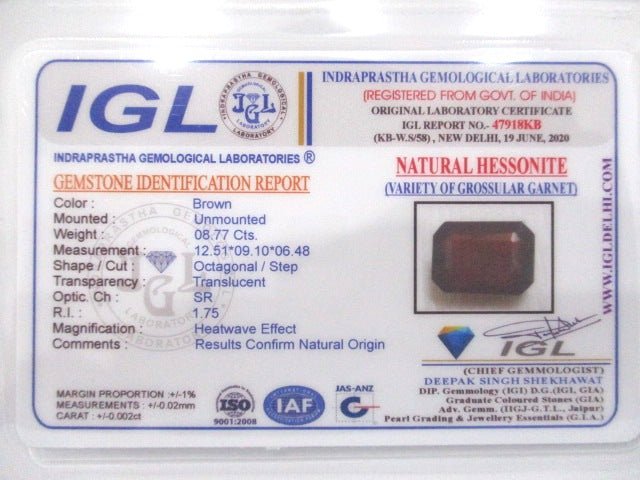 Title: 8.77 Carat (9.65 Ratti) Natural Ceylon Octagonal Hessonite (Gomed) Gemstone