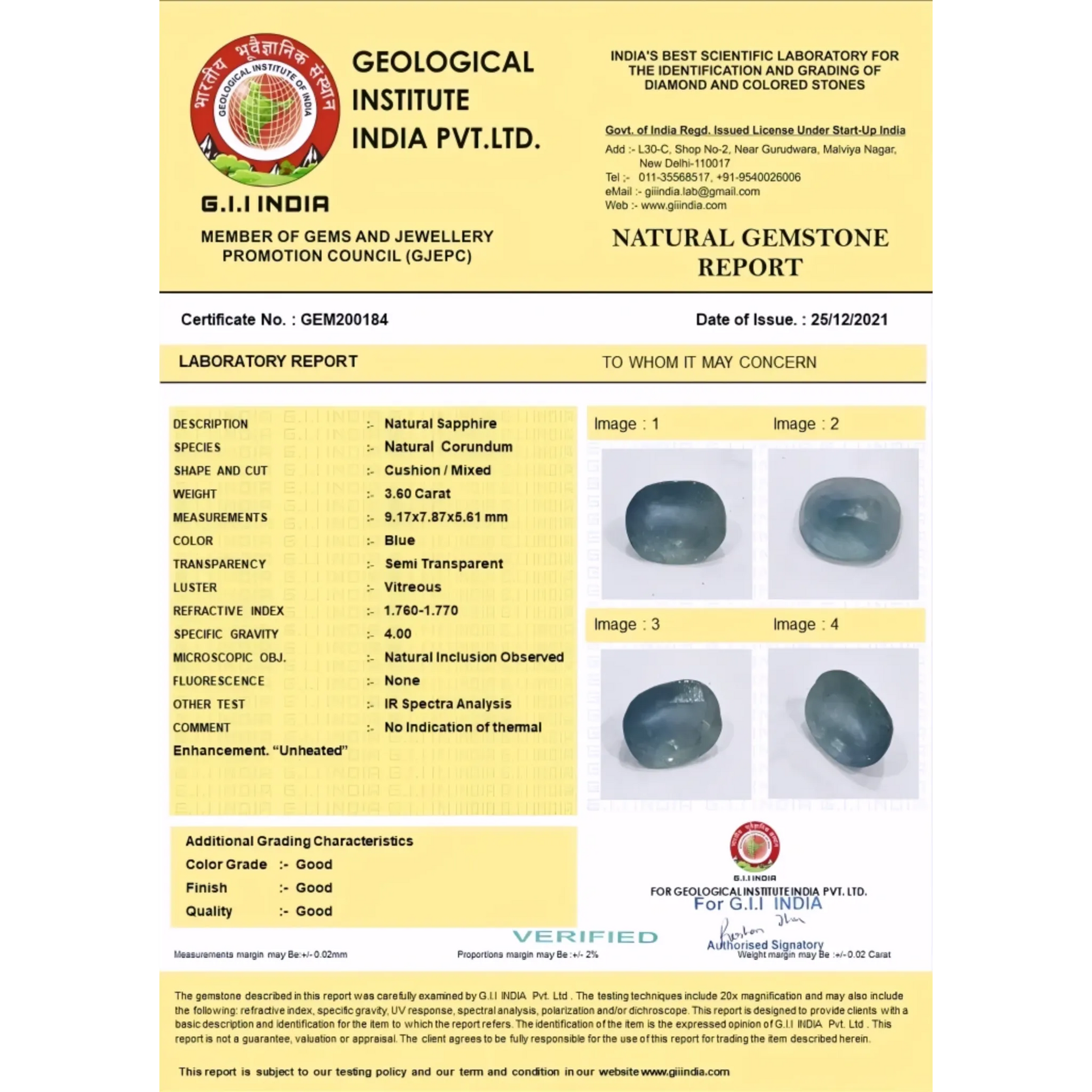 Top-Quality Ceylon Pitambari Untreated & Unheated Gem Lab Certified 3.6 carat
