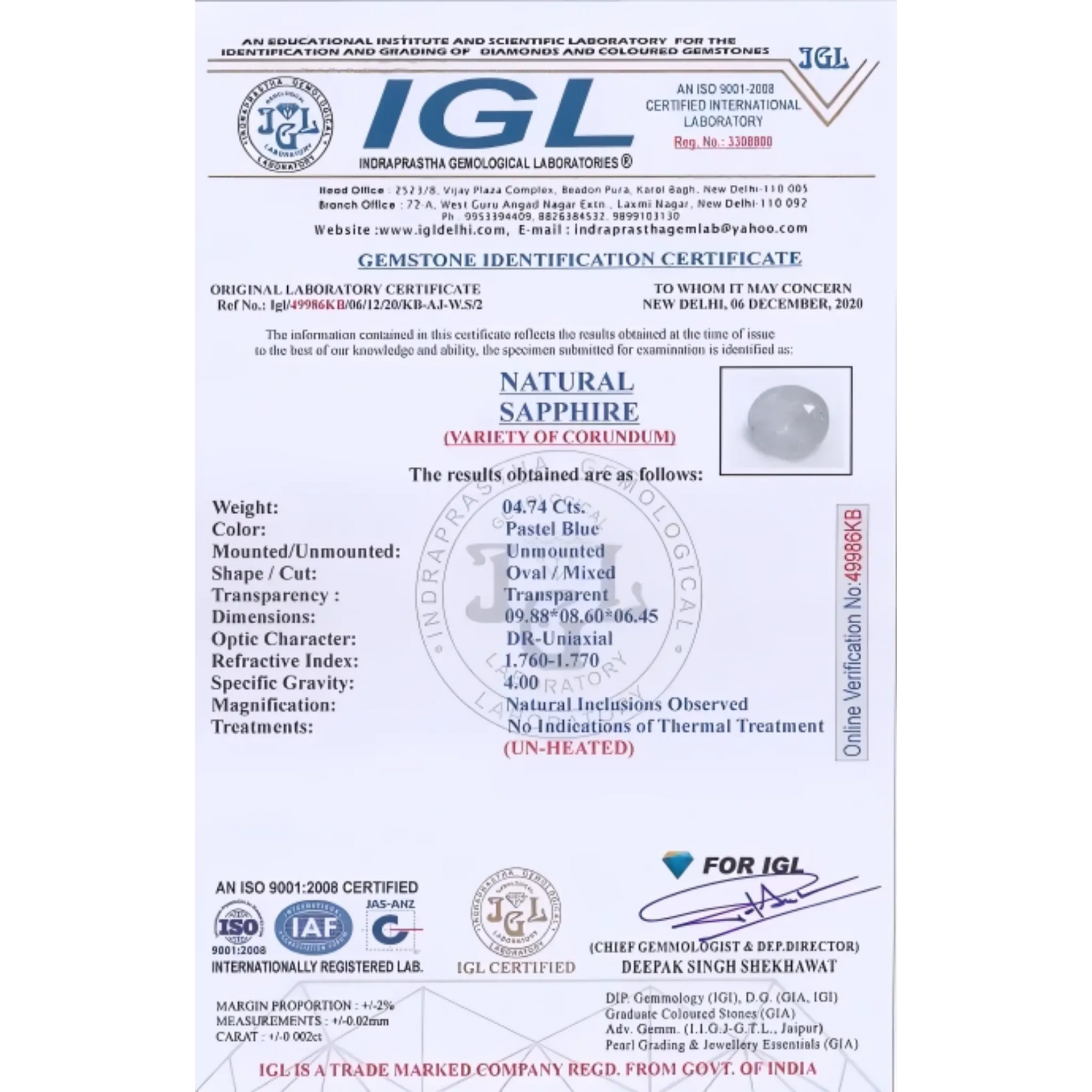 Top-Quality Ceylon Pitambari Untreated & Unheated Gem Lab Certified 4.74 carat